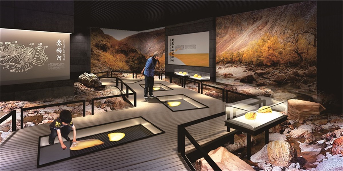 以动态数字内容为点睛之笔, 适当利用多媒体数字手段,如三折幕影厅、矿洞虚拟漫游、全息展柜等,充分呈现黄龙玉的文化性和知识性。