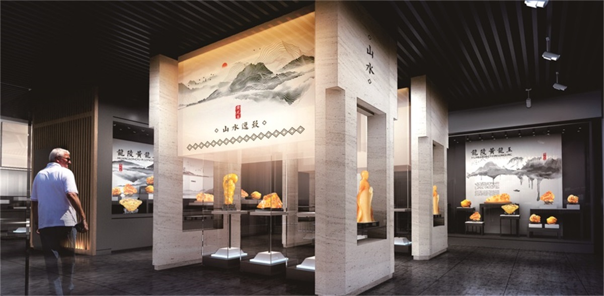 以静态展陈为主要展示方式,现代博物馆专业展柜陈列,聚焦黄龙玉的鉴赏、雕件的艺术赏析。