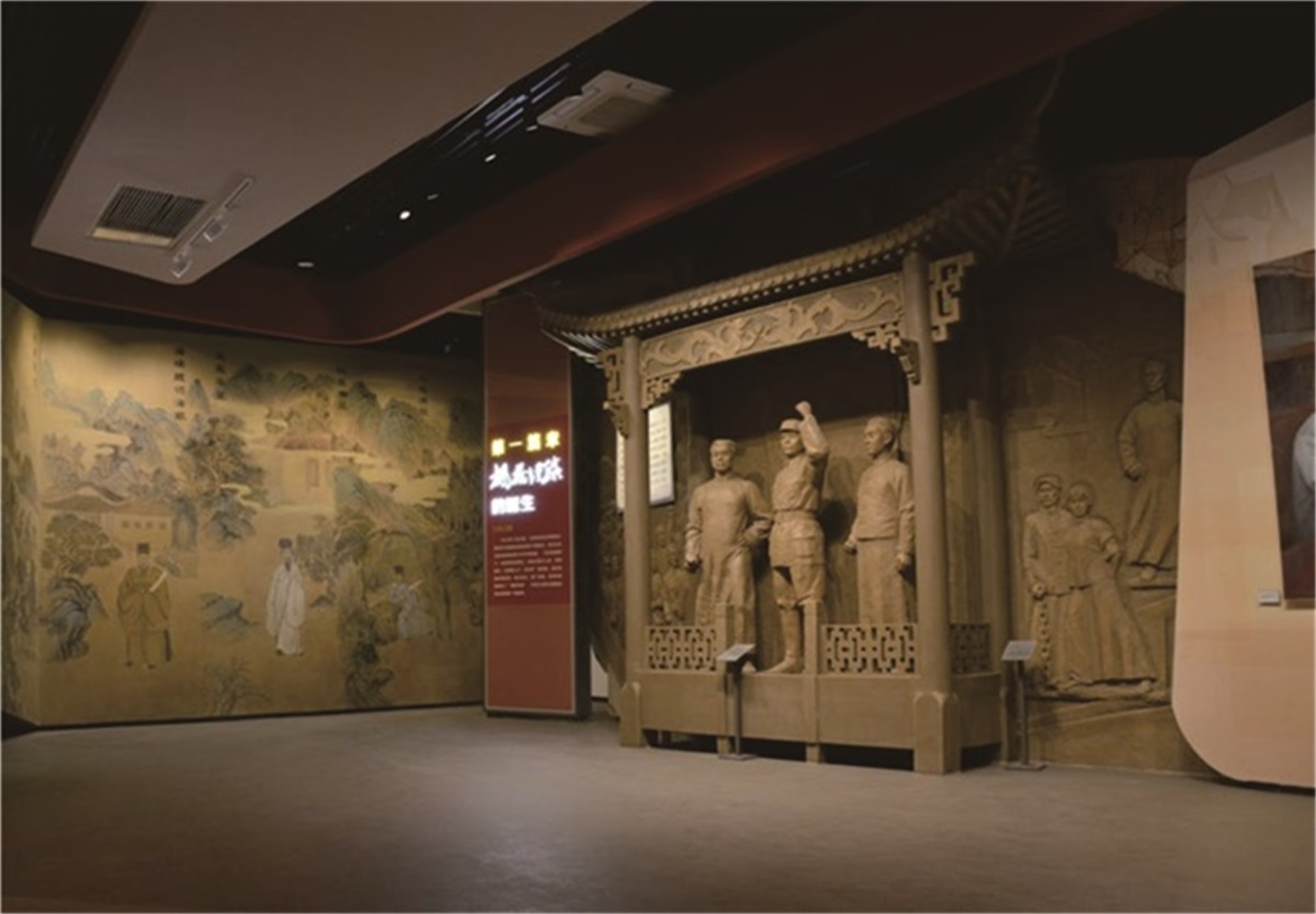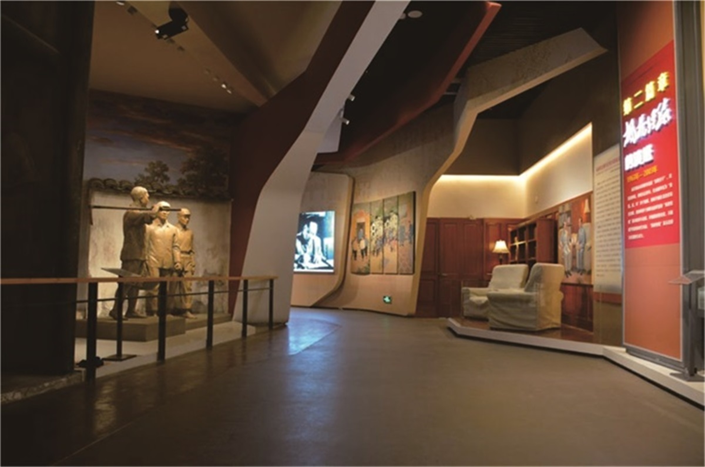 枫桥经验纪念馆是全国政法机关学习的典范,通过“枫桥经验”的诞生(1963)?“枫桥经验”的演进(1963-2003年)、“枫桥经验”的发展(2003-2018 年)、“枫桥经验”的升华、新时代“枫桥经验”在浙江的探索实践五大篇章串联起“枫桥经验”的发展历程,形象生动、一目了然。我们以历史发展的时间为线索努力寻找故事的叙述性以及象征性的元素,构建出主题明确、富有节奏和变化的展示空间。