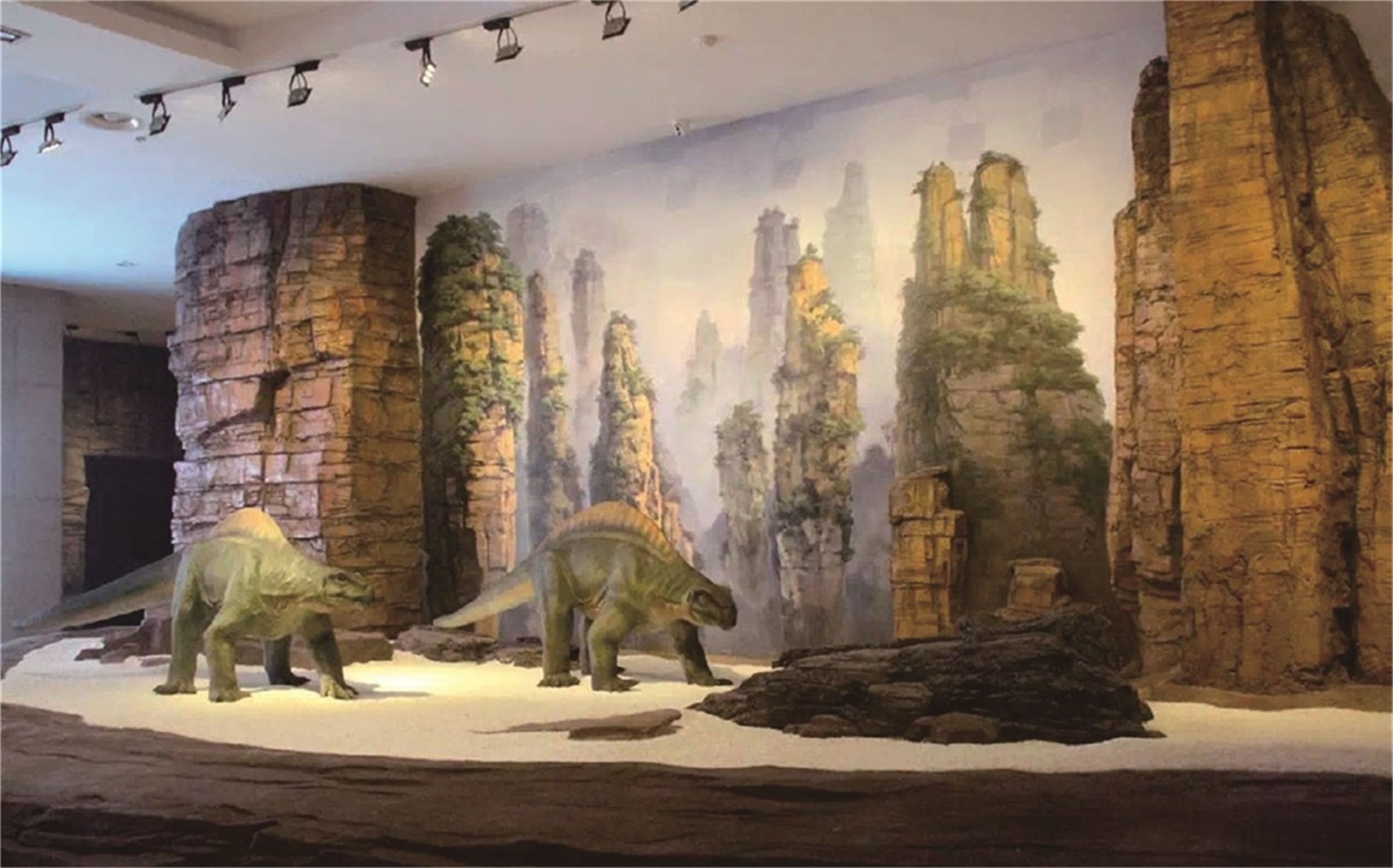 由序厅,地球厅、地貌厅、史前生命演化厅、开发与保护厅组成。通过多种类的艺术场景的展示形式、体现张家界多样的动植物种类与独特的地质资源以及悠久的历史资源;以全面展示张家界地质资源为核心,运用多种岩石为造型为基础,呈现多样的艺术展示效果为目标。